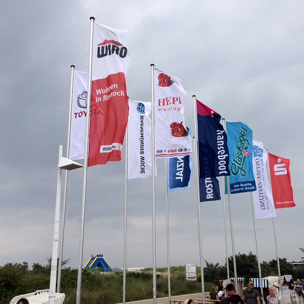 Die Hissflaggen von City Medien in Wiesbaden sind auch von weitem sehr gut sichtbar und fesseln die Blicke der Passanten. Die Hissflaggen sind sehr stabil und witterungsbeständig, weswegen sie ideal für die Anwendung in Außenbereichen geeignet ist. Hissflaggen werden beispielsweise gerne auf Firmengeländen genutzt, damit Passanten und Anreisende schon von Weitem sehen, wo das Unternehmen seinen Sitz hat. Aber auch auf Messen, Festen, Sportveranstaltungen, bei Vereinen oder vielem mehr machen sie eine gute Figur.